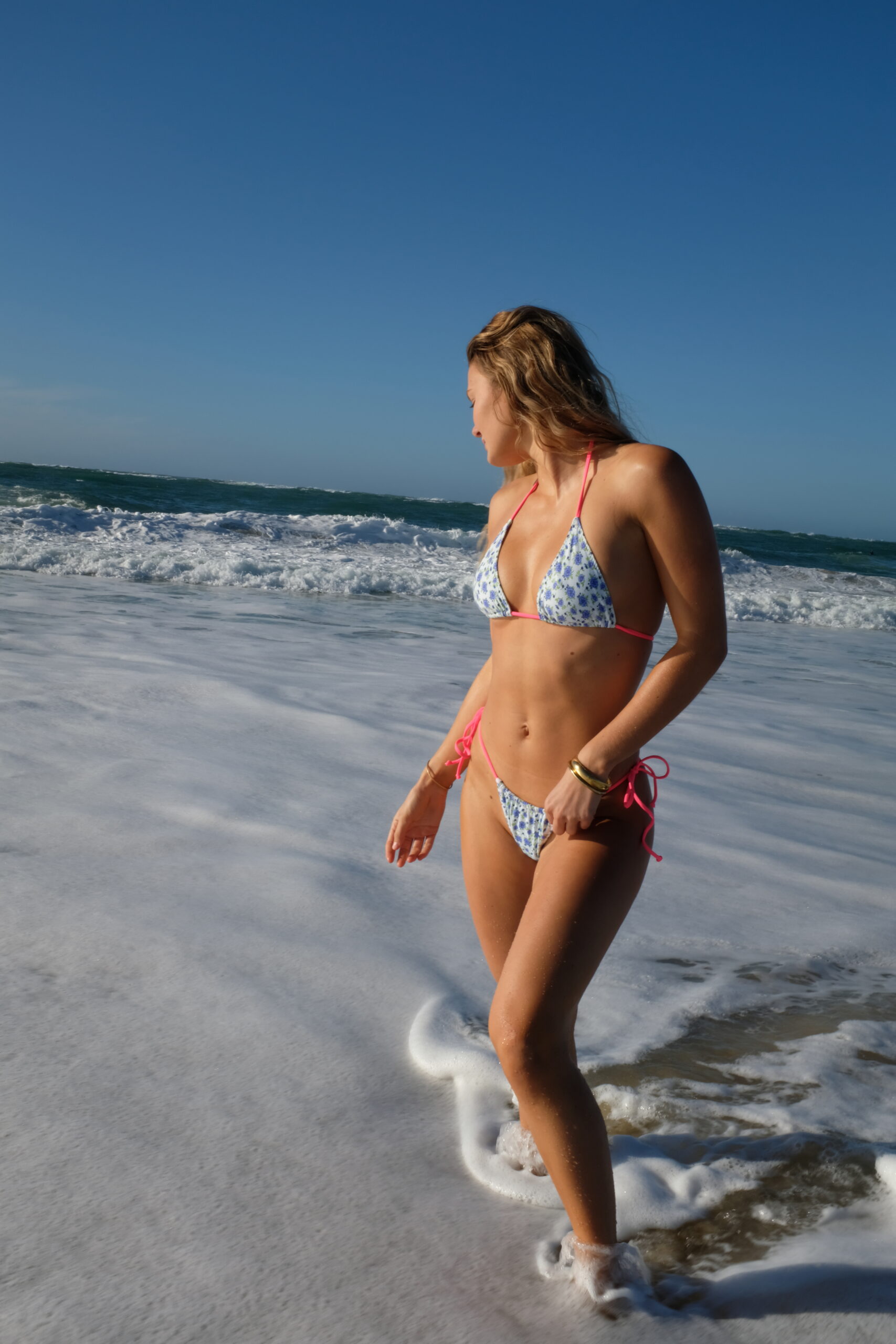 Caroline fait un 34-36 en bas et porte une taille S, et pour le haut elle fait un 90B et porte une taille S.