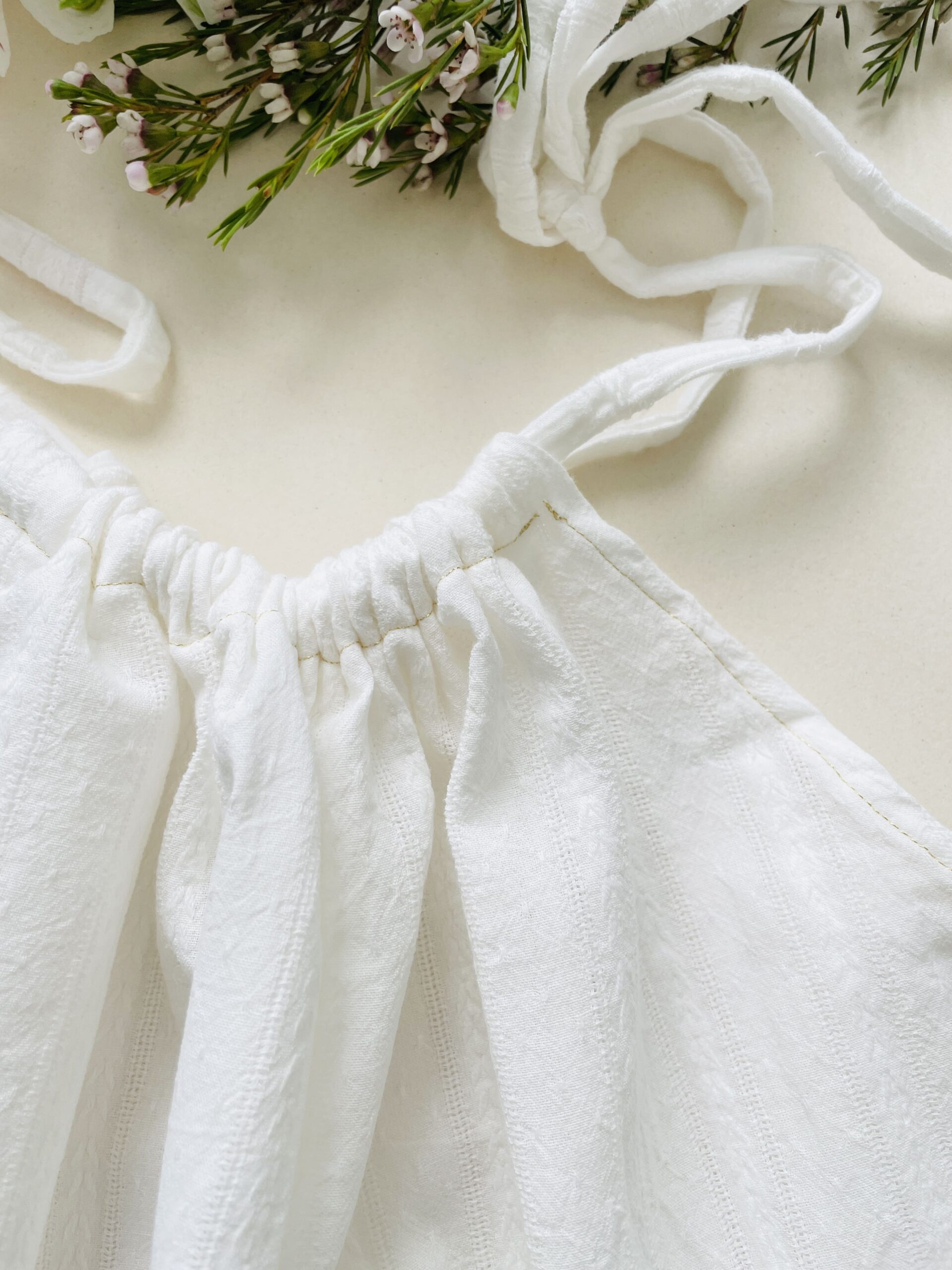 Blouse pour femme 100% en voile de coton certifié BIO OKEO-TEX, 100% made in France, 100% confectionné par mes soins sur le Bassin d’Arcachon.La petite blouse Romance est une blouse babydoll, légère et bohème, à marier avec vos petites culottes et/ ou shorty Chochotte la nuit ou avec un jean, un short en journée…. bref avec ce que bon vous semblera! Elle est ajustable grâce aux liens. Le col et le décolleté est également modulable selon vos envies.