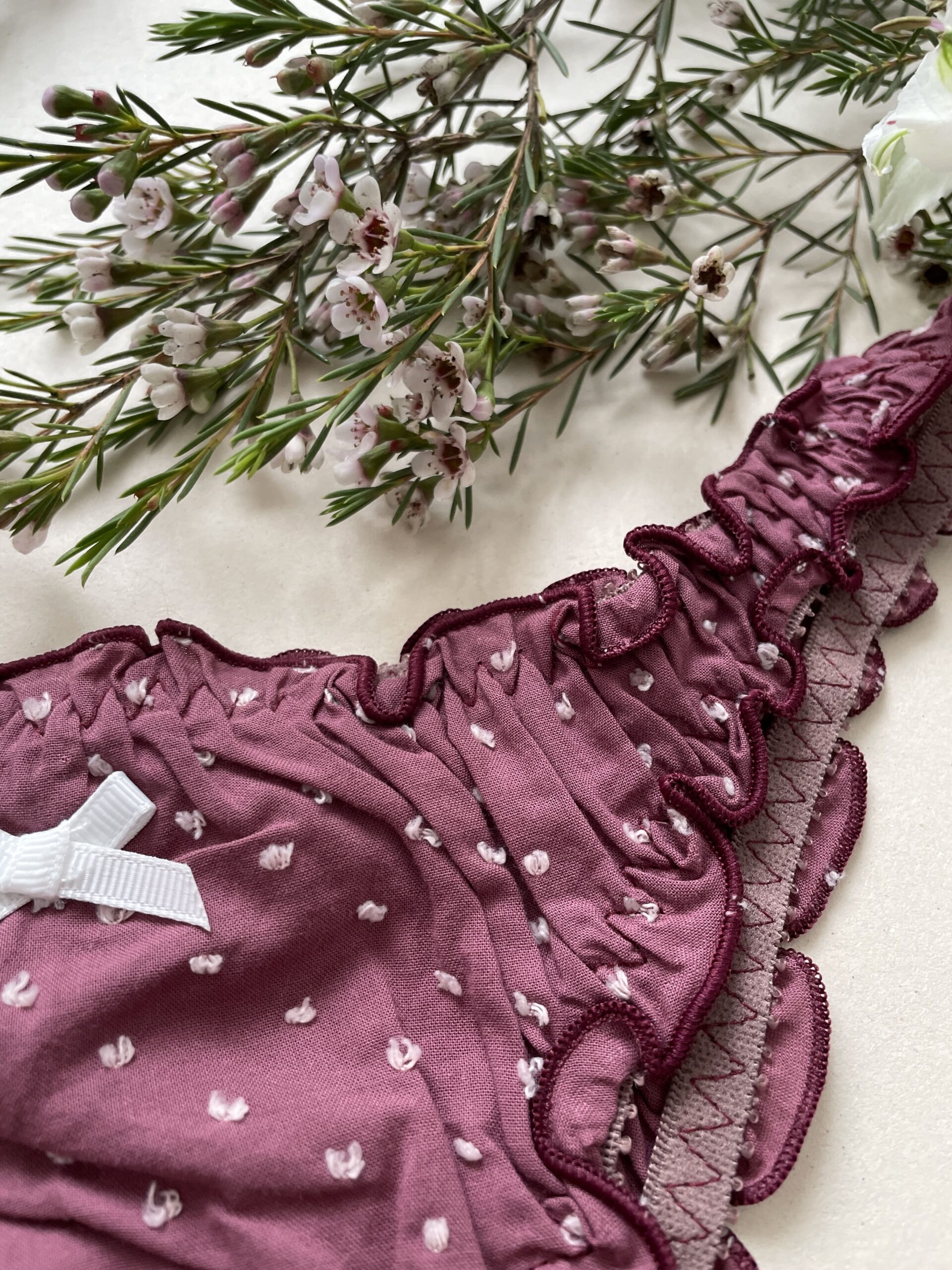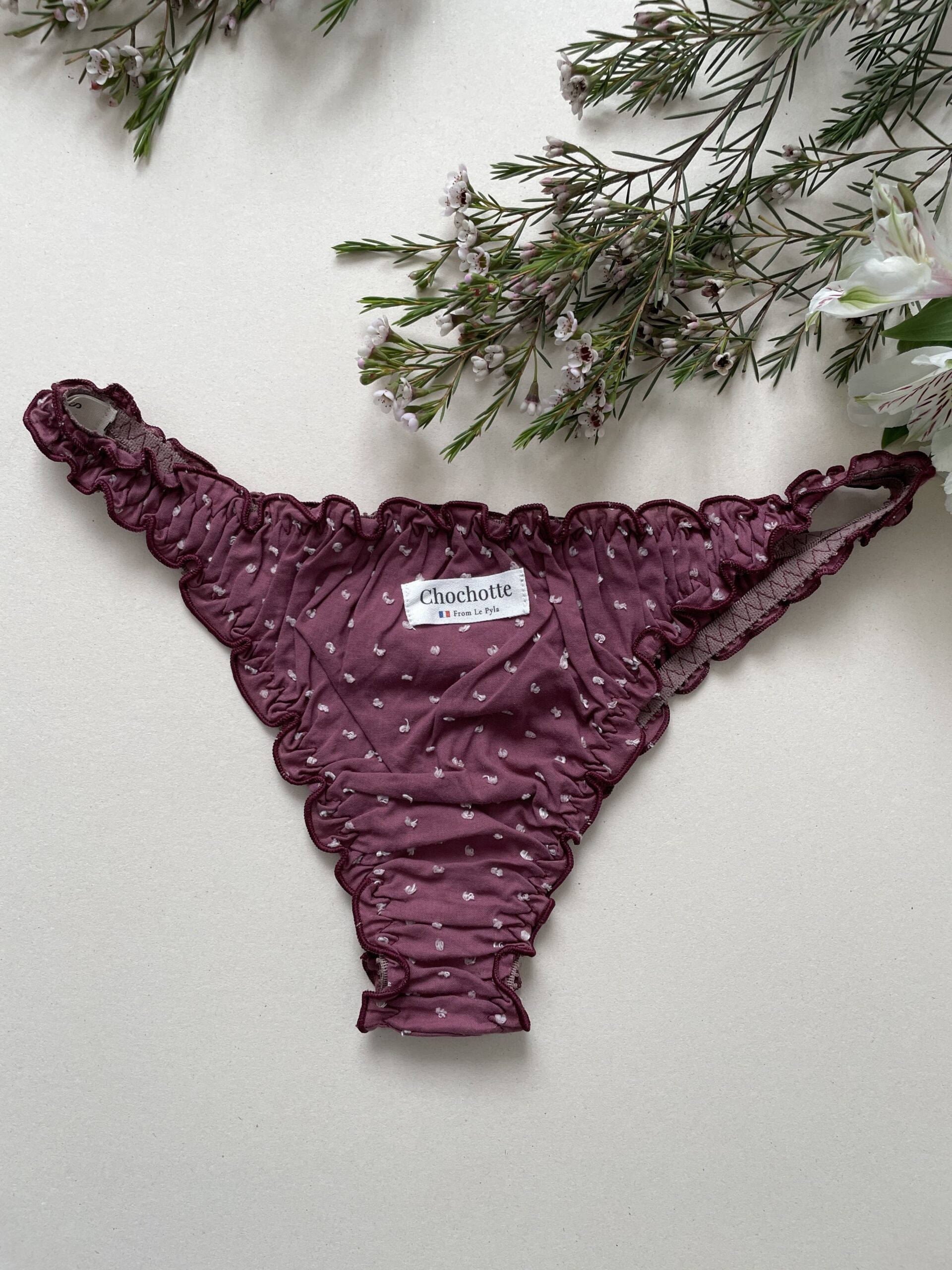 Culotte pour femme type brésilienne à froufrous 100% voile de coton certifié Oeko Tex, 100% confectionné par mes soins sur le Bassin d’Arachon.