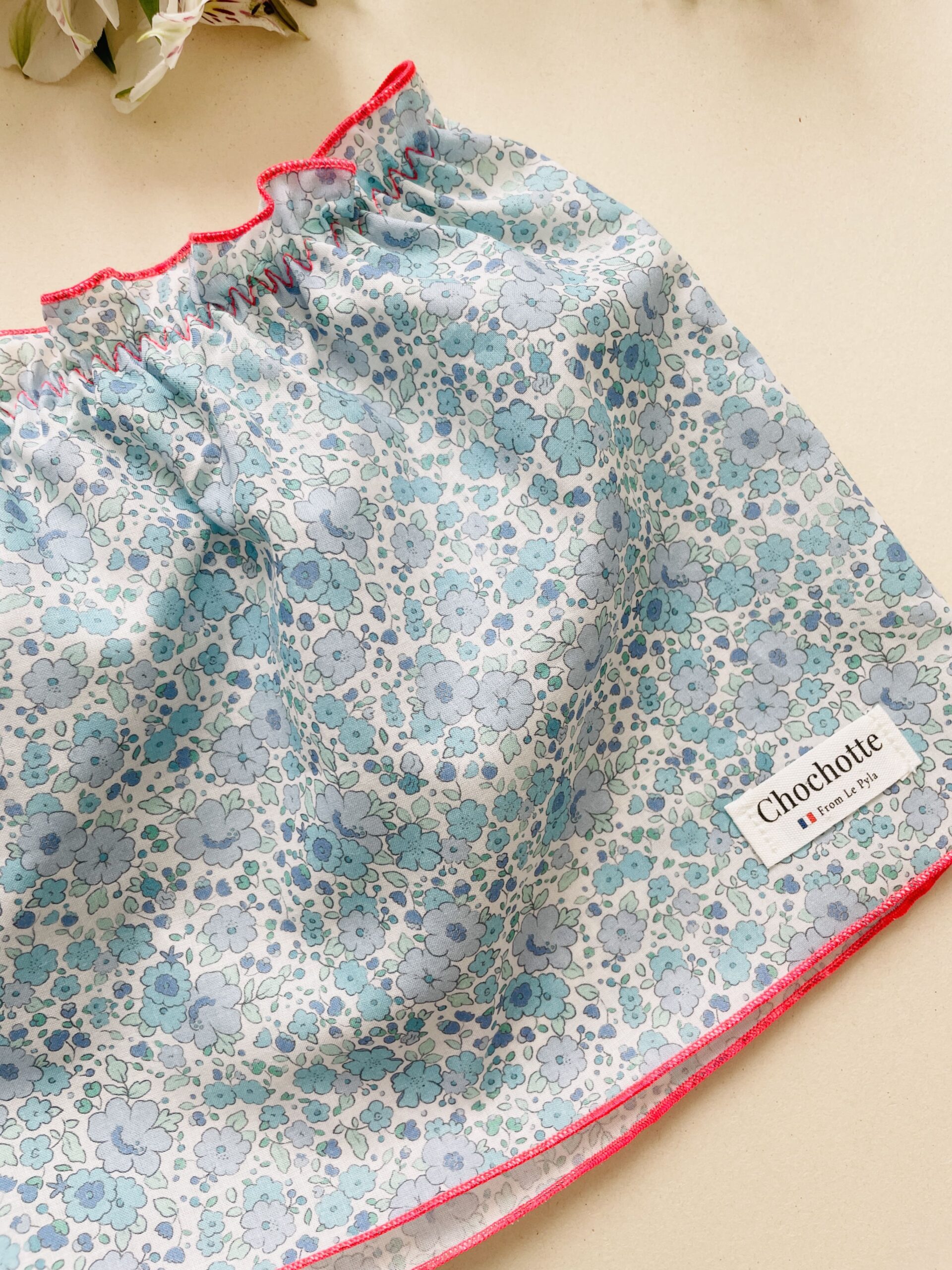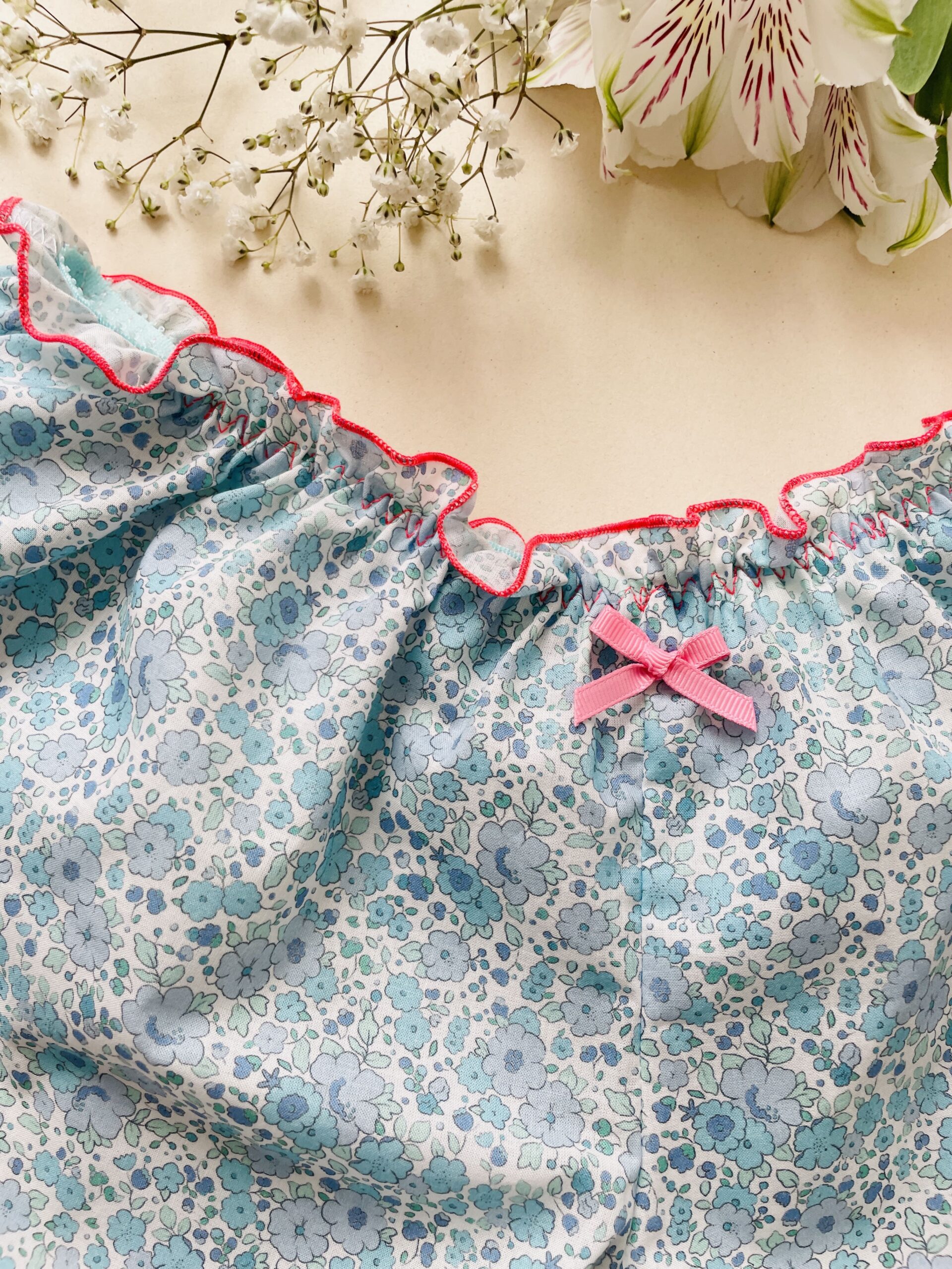 Shorty pour femme avec de jolis froufrous à la ceinture 100% en voile de coton soyeux, 100% confectionné par mes soins avec amour au bord du Bassin d’Arcachon.